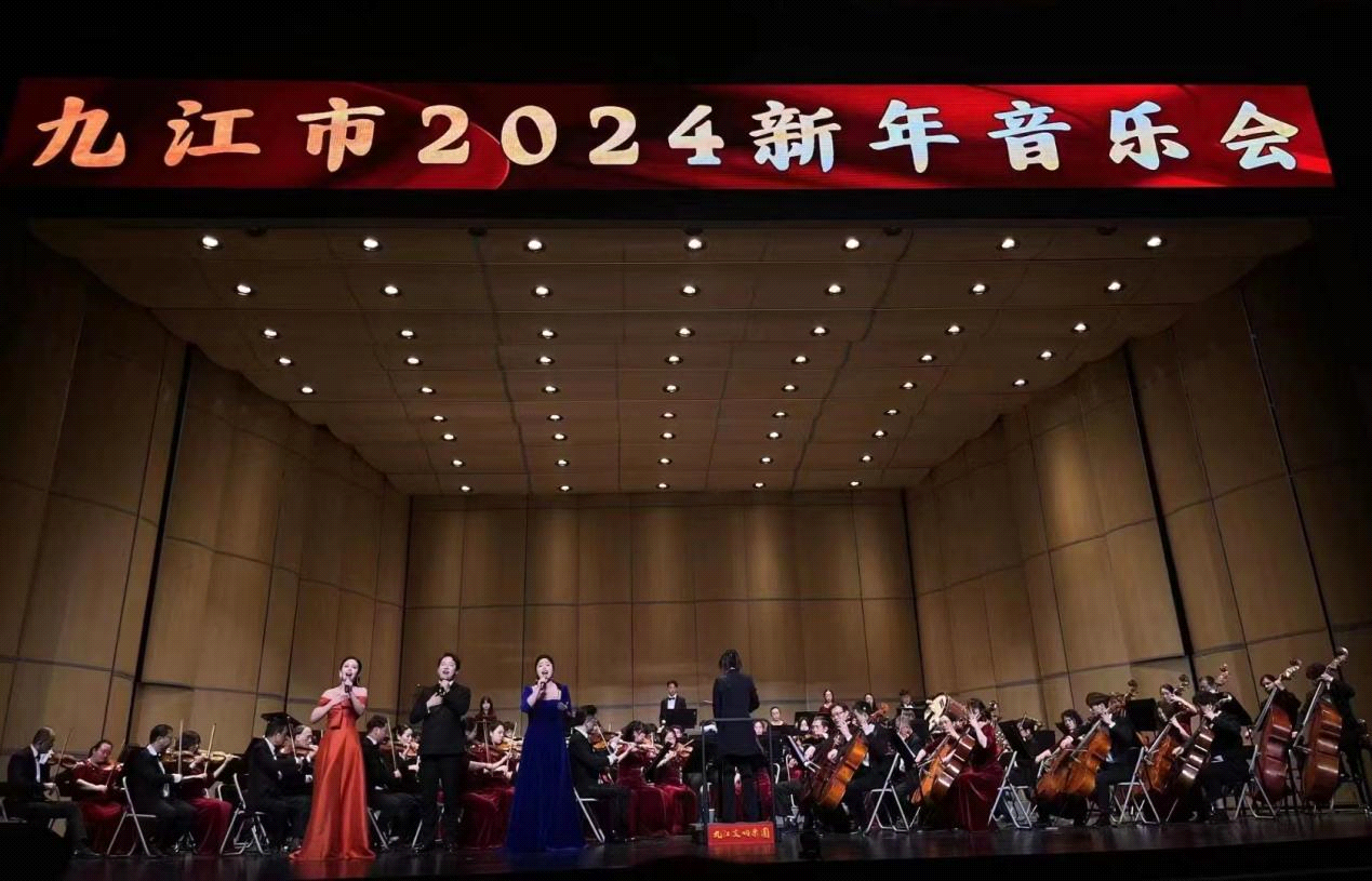 长江奔流,奋进新征程;九派浔韵,奏响新时代。1月1日晚,由九江学院和九江市文广新旅局联合主办的“九江市2024新年音乐会”在九江市文化艺术中心举行。音乐会以弘扬伟大抗洪精神,歌颂美好生活为主旋律。九江市委书记刘文华,市委副书记、市长蒋文定等市领导,九江学院党委书记李明斌,党委副书记、校长陈小林,党委委员、副校长鲁卫东,党委委员、组织部部长杨杰,以及600余名观众一起共同观看演出。