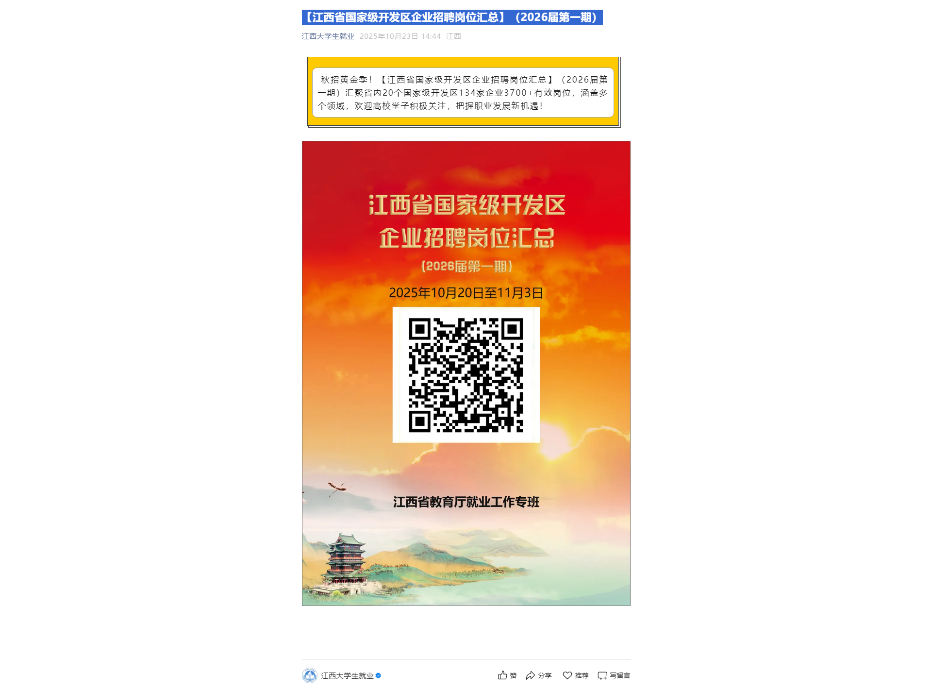 【江西省国家级开发区企业招聘岗位汇总】(2026届第一期)