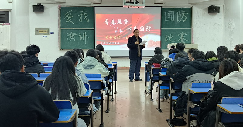 信仰之灯,照亮强军梦想,时代之声,奏响国防凯歌。为深入学习贯彻习近平强军思想,全面贯彻党的二十大精神,深化爱国主义教育和全民国防教育,增强民族自豪感和时代使命感,强化忧患意识、危机意识,激发学生奋发向上的精神状态。3月13日晚,旅游与地理学院学生会学创部在竞知楼阶六教室成功举办“青春筑梦,心系国防”主题演讲比赛。2024级同学踊跃报名参赛,学院党委副书记吴彭年,思政科科长李海与学生会主席团成员陈佳语、姚晴、宋旻芮一起担任了评委。