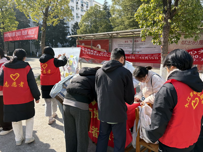 活动筹备阶段,志愿者们提前前往教学楼搬运桌椅与黑板,精心准备好明信片、马克笔等物资,为活动顺利开展筑牢基础。活动当天,志愿者们准时抵达三食堂小广场,迅速完成场地布置。面对路过的同学,志愿者们耐心讲述国家公祭日的历史由来,阐释活动“铭记历史、珍爱和平”的意义,积极动员师生参与其中。在志愿者的引导下,同学们纷纷拿起笔,在明信片上写下“铭记国殇,吾辈自强”“以史为鉴,珍爱和平”等真挚寄语,用文字寄托对遇难同胞的深切缅怀。活动尾声,志愿者们将满载哀思与誓言的明信片在黑板上精心摆出“12.13”的字样,醒目数字定格历史伤痛,也凝聚着青年对和平的守护之心。现场师生驻足凝视,在肃穆的氛围中重温历史、坚定信念,志愿红成为广场上一抹承载家国情怀的亮色。