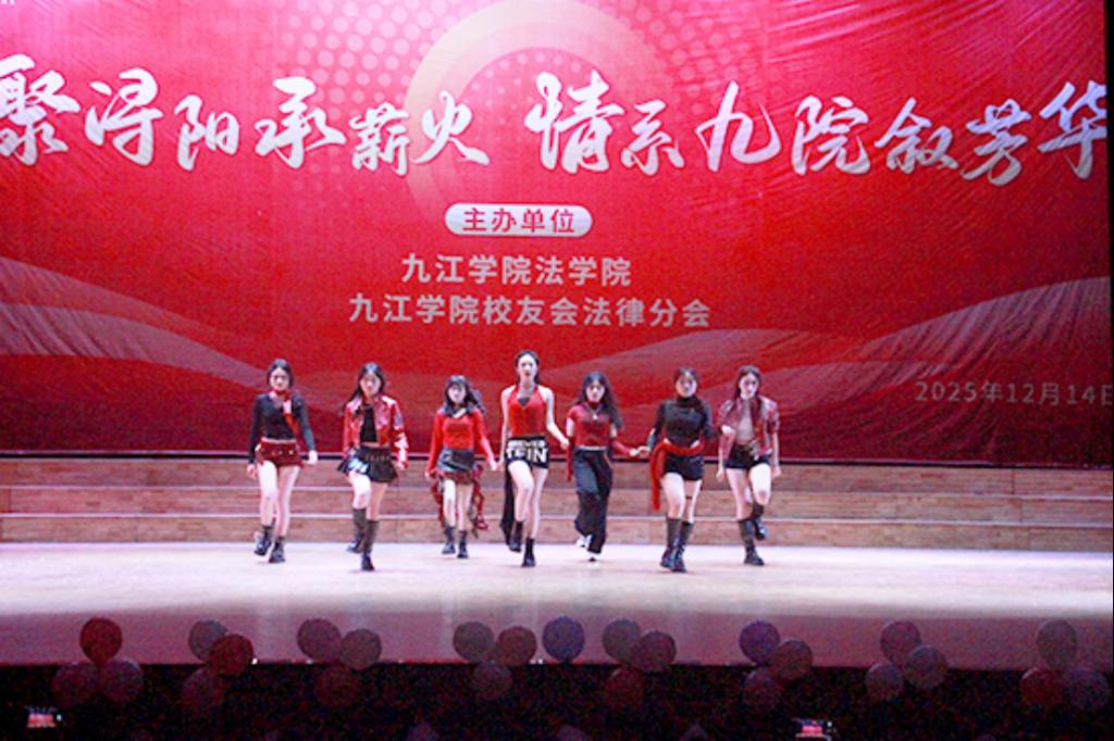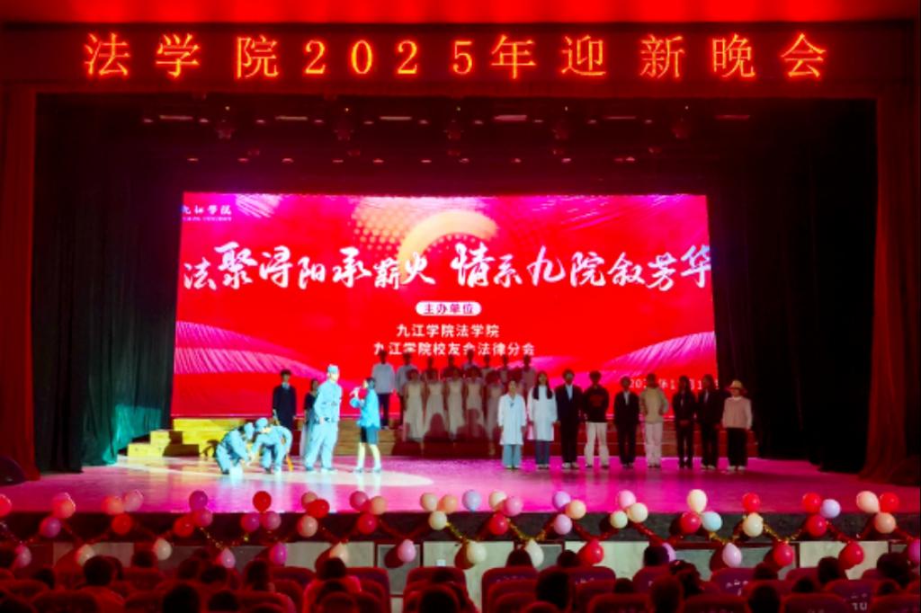 2025 年 12 月 14 日晚,九江学院法学院携手九江学院校友会法律分会在大礼堂隆重举办“法聚浔阳承薪火 情系九院叙芳华”主题晚会。党委委员、副校长查振华莅临观看,学生工作处副处长张堑、法学院党政领导、九江学院校友会法律分会代表及师生代表齐聚一堂,共赏这场兼具青春朝气与温情底蕴的文艺盛宴。