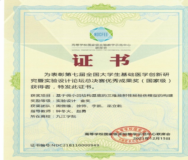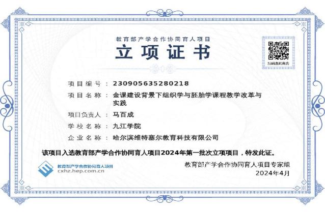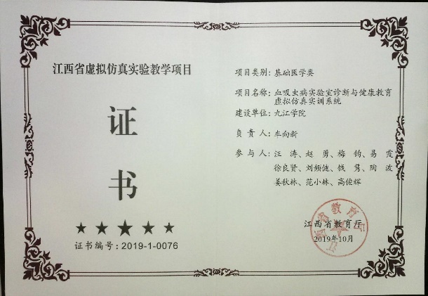 基础医学整合创新实验教学团队获批2022年江西省高水平本科教学团队以及九江学院校级教学团队建设点。血吸虫病实验室诊断与健康教育虚拟仿真实训系统虚拟仿真实验教学项目获评江西省虚拟仿真实验教学项目。医学生物化学与分子生物学和系统解剖学获2020年省级精品在线开放课程,系统解剖学与药理学获江西省2022年线上线下混合式一流课程。2人次获江西省青年教学竞赛医科组二等奖。此外,学院还获省级教改课题4项、教育部产学研合作育人项目3项、校级课程思政示范课程3门、校级教学成果二等奖4项。
