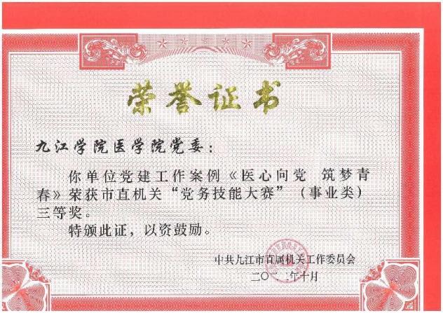 学院始终坚持以习近平新时代中国特色社会主义思想为指导,以“党建引领三全育人,思政贯穿两个课堂”为指引,全面贯彻党的教育方针,落实立德树人根本任务。以“守初心·担使命·九医心向党”为党建品牌,着力打造“医心向党·铸魂育人”教工党建子品牌和“医心向党·筑梦青春”学生党建子品牌,致力于培养德智体美劳全面发展的高素质应用型医学人才。