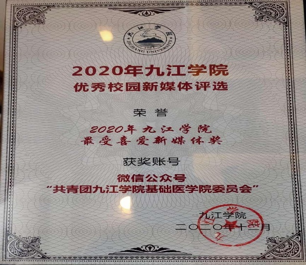 学院人才培养成效显著,2名学生获评“2020年九江市优秀共青团员”;学院团委获评2022年“九江市五四红旗团委”;2名学生干部荣获“浔阳区优秀共青团员”“九江市优秀志愿者个人”等称号。