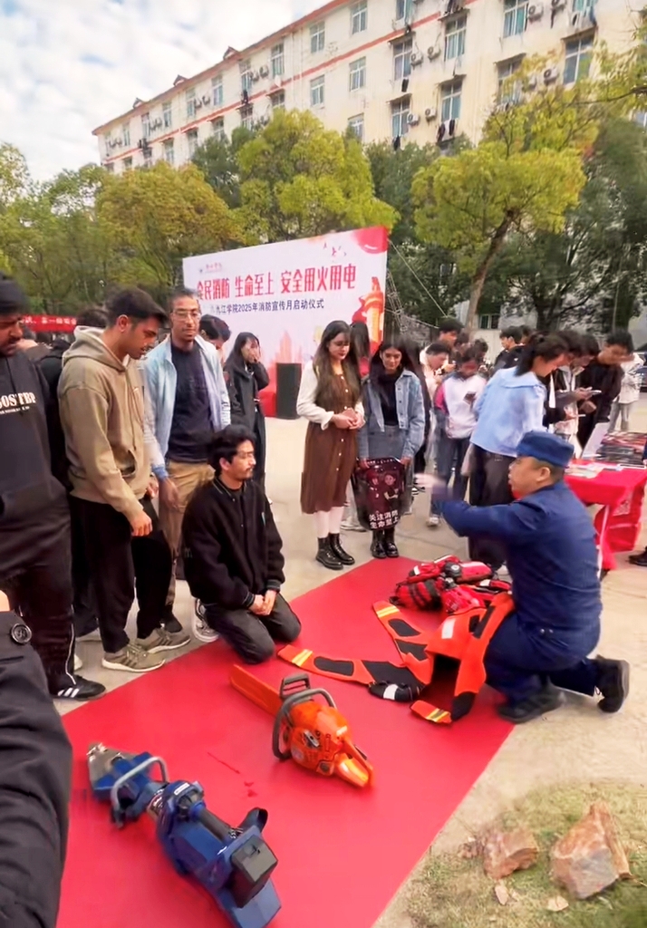 来自巴基斯坦的学生Saad Ullah表示:通过这次演练,我们直观掌握了实用的消防技能,熟悉了校园疏散路线与安全设施,切实提升了在异国他乡学习和生活的安全感。