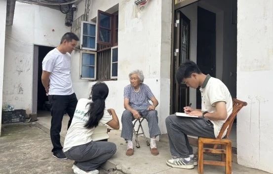 7月2日,实践团队深入傅家村和吴迪村,走访慰问了三位高龄老人,用实际行动将爱与温暖传递到老人家中。实践队员们围坐在老人身旁,详细询问他们的身体状况、饮食起居和生活需求,耐心倾听老人们分享生活中的点滴故事和心声。对于行动不便、长期独居的老人,实践队员们仔细检查家中的水电设施是否存在安全隐患,帮助老人打扫房间、整理衣物,以确保老人居住环境安全整洁。