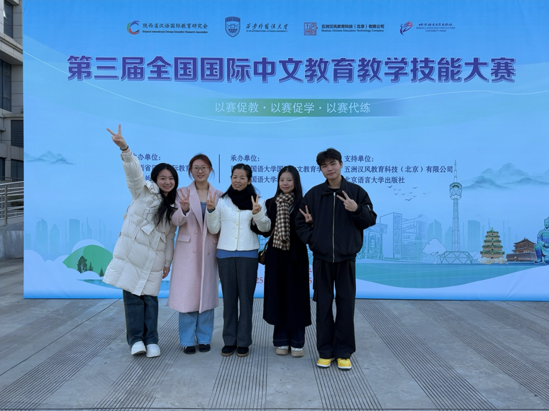 11月21日至23日,第三届全国国际中文教育教学技能大赛在西安外国语大学落下帷幕。九江学院汉语国际教育专业的4名参赛学生全部闯入决赛,最终荣获全国一等奖1项、二等奖1项、三等奖2项,并摘得“语音教学专项奖”。这是该团队继今年10月在第三届汉语国际教育国家级一流本科专业建设国际高峰论坛暨第四届“汉语+”全国汉语国际教育教学技能大赛中斩获全国特等奖和一等奖后,再次在全国舞台上取得优异成绩。
