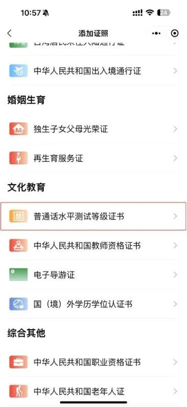 2、在“文化教育”选择“普通话水平测试等级证书”
