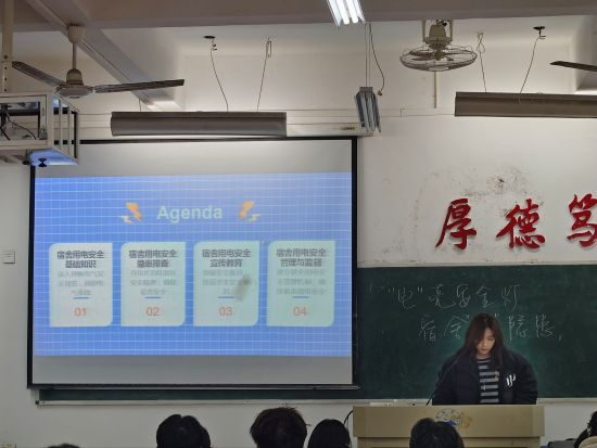 12月4日,计算机与大数据科学学院于文友楼开展“‘电’亮安全灯,宿舍‘零’隐患”主题班会活动。此次活动由班级团支书,围绕宿舍用电安全展开讲解。班会过程中,团支书通过播放违规用电事故案例视频、展示宿舍安全隐患图片等形式,直观讲解私拉乱接电线、使用大功率违规电器的危害,明确宿舍用电“禁止清单”。同时,团支书分享了宿舍安全自查小技巧,插座老化、充电器长期不拔等常见隐患,引导同学们养成“人走断电”的良好习惯,让安全规范入脑入心。