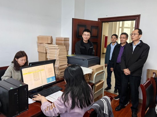 王殿元实地察看了档案数字化处理工作间和学校档案库房,详细了解档案收集、扫描录入、数据存储、安全备份等流程信息化建设情况,仔细查阅了数字化档案成果样本、安全管理制度,并与档案管理工作人员交流,倾听工作推进中的难点问题与意见建议。