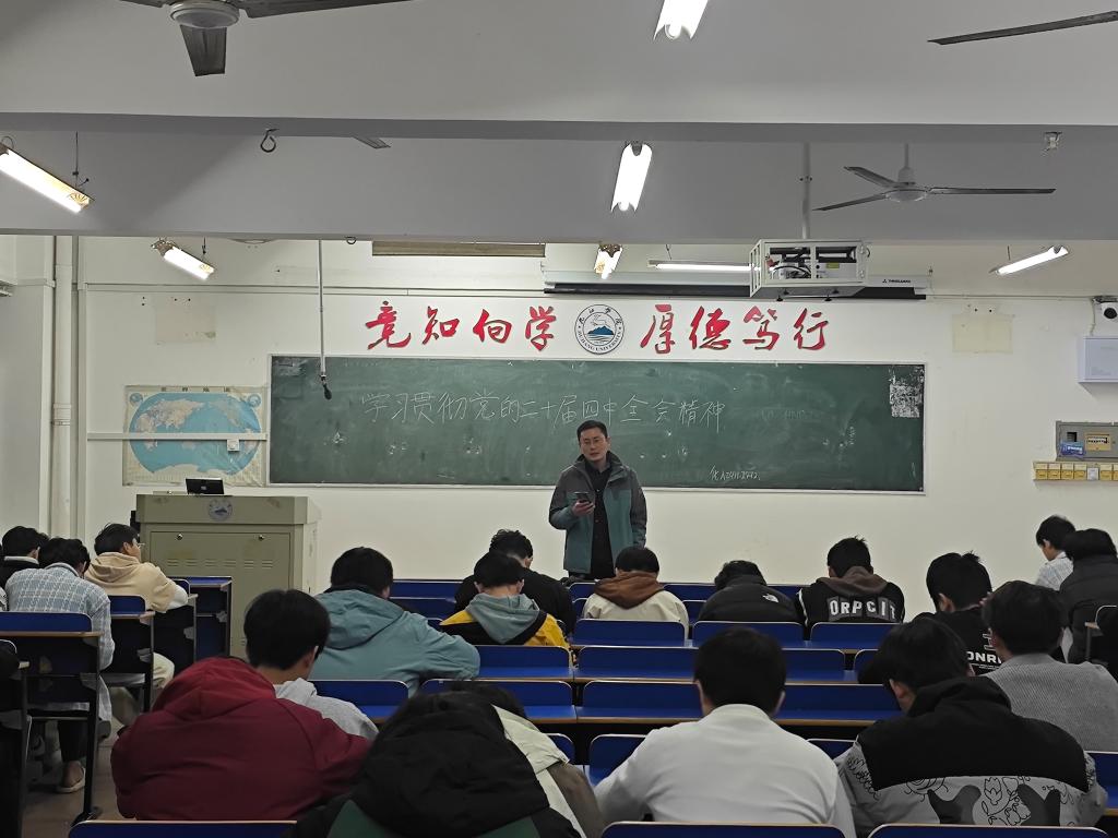 为深入学习贯彻党的二十届四中全会精神,引导青年学子坚定理想信念、勇担时代使命,化学化工学院组织各班级于11月30日晚在竞知楼召开了学习贯彻党的二十届四中全会精神主题班会。