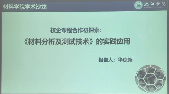 华琼新博士分享了“校企课程合作初探索:《材料分析及测试技术》的实践应用”报告,汇报了近年来与企业合作的项目经历,并根据《材料分析及测试技术》校企合作课程建设——真实项目案例库建设要求,对前期项目中评测的X射线衍射分析、扫描电子显微分析、透射电子显微分析、热重分析、差示扫描量热分析等评测数据进行整理,形成评测案例雏形,为后期建设《材料分析及测试技术》校企合作课程积累素材。