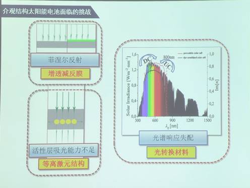 首先,罗琦博士以“下转换纳米材料的合成及其在介观结构太阳能电池中的应用研究为主题分了近期研究工作内容。重点介绍了利用水热合成法合成纳米晶NaGdF4:Eu,并将其应用在介观结构太阳能电池中,制备染料敏化太阳能电池,通过分析NaGdF4:Eu纳米材料形貌及其物相组成,测试太阳能电池的J-V曲线、IPCE及透过率,分析了NaGdF4:Eu-PMMA下转换薄膜应用在器件中Jsc提升了4.6%PCE提升了4.5%。最后罗琦博士结合自己研究工作和大家分享了钙钛矿电池及柔性太阳能电池的发展,与在座老师对该技术中发展方向及跨领域技术合作等问题进行了探讨与交流。