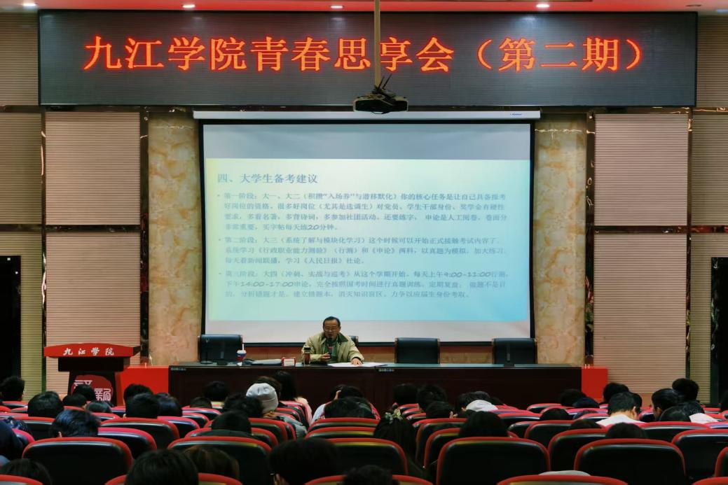 为帮助我校学生明确职业规划方向,进一步提升就业竞争力,12月3日,校团委在香远楼报告厅举办以“大学生职业规划”为主题的九江学院青春思享会(第二期)活动。各二级学院学生代表400余人参活动,共同探讨职业规划的路径与方法。