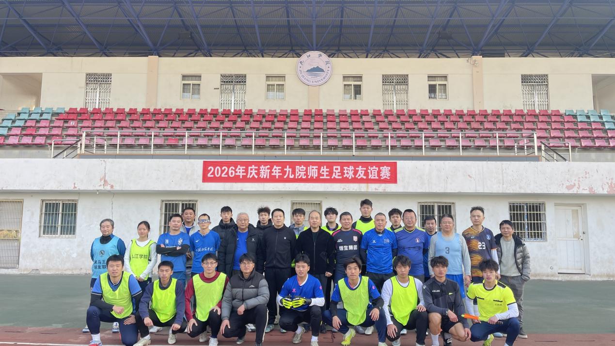 为喜迎2026年新年,丰富师生校园文化生活,增进师生交流,并在实战中锤炼学生的足球专业技能,12月26日下午,由校工会主办、校教工足协与体育学院共同承办的“九江学院2026年庆新年师生足球友谊赛”在学校南区足球场火热开赛。