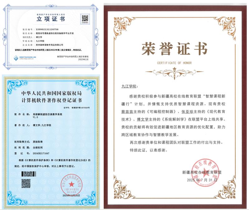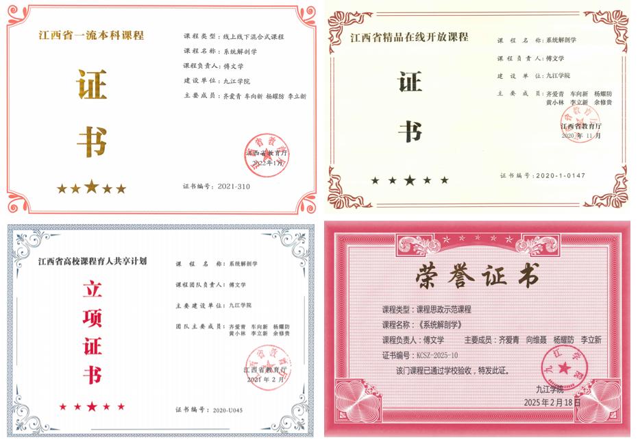 2020年 :获评省级精品在线开放课程,2021年 :获评江西省高校课程育人共享计划课程,线上教学体系日趋完善。