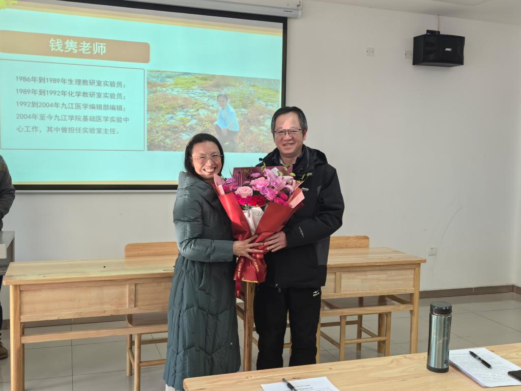 随后,伴随着热烈的掌声,学院教师代表为三位退休教师送上了饱含敬意与祝福的鲜花,感念他们多年来的辛勤付出。