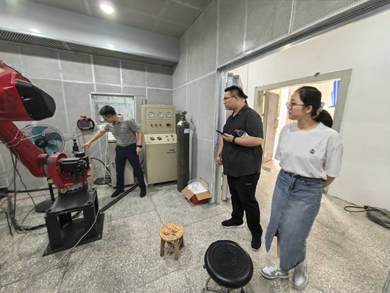 上午10点,在科研处李老师陪同下,科技局专家来到实验室实地检查。王洪涛主任向专家介绍了项目立项后,实验室在研究条件和设备上的改善,重点介绍了2024年新采购的超音速火焰喷涂系统与配套建设喷涂隔音房。