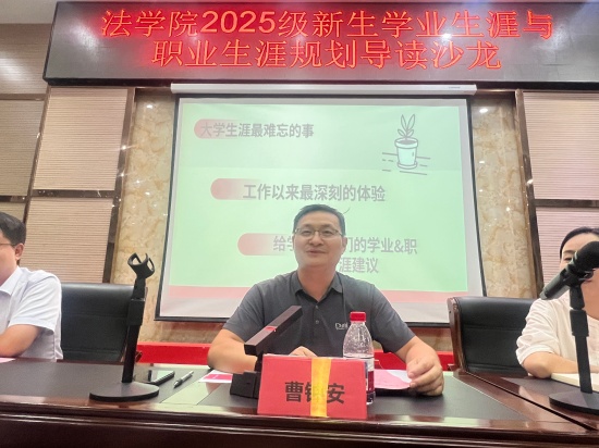 曹钟安在总结中寄语新生大学生活丰富多彩,要以三位优秀校友为坐标,把“一心二做三多”转化为“爱拼才会赢”的行动方案,在九江学院法学院写好属于自己的“成长切片”。