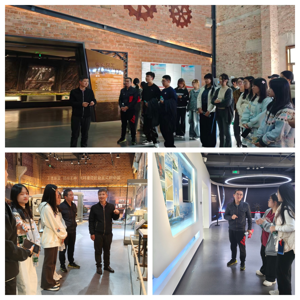 参观结束后,学生们纷纷畅谈感悟。学生何嘉乐感慨道:“漫步锈迹斑斑的老车间,触摸千年工业脉搏,从铜矿开采工具到现代化智能装备,历史与科技交织,匠人精神薪火相传,让我对国家工业发展、强国建设有了更鲜活的理解。”游祉涵表示:“红砖旧厂房承载着奋斗记忆,从商朝到新时代工业崛起,展品诉说的不仅是九江的发展史,更是中国人民自强不息的拼搏史,让我对‘四个自信’愈发坚定。” 大家一致认为,此次活动将课堂理论与实践体验深度融合,不仅深化了对新中国史的认知,更激发了青春担当,未来将以更昂扬的姿态投身民族复兴伟业,让中国特色社会主义道路自信、理论自信、制度自信、文化自信成为成长路上的坚定信念。