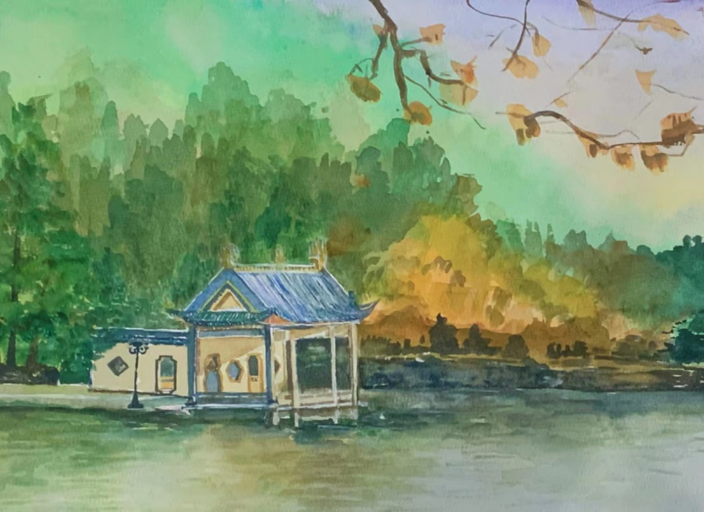 美术学专业《水彩风景写生》的课程,最主要的目标就是培养学生在大自然的环境中,运用细致的观察、整体的表现、色彩的丰富的构成,以及水彩特有的表现技法和个性语言来表现眼前三维立体的自然环境风光。