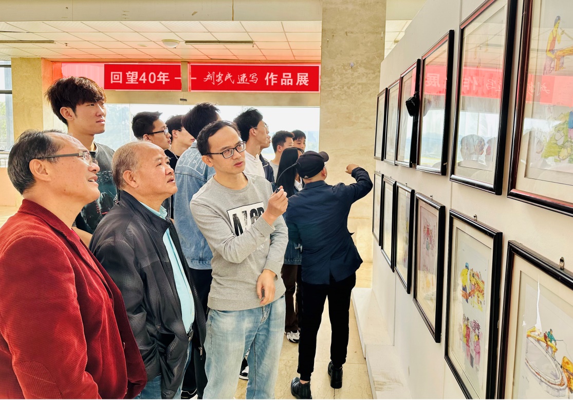 在全面学习贯彻党的二十大精神之际,艺术学院于11月3日组织开展“喜迎二十大、艺起向未来”设计专业系列展览活动之“回望40年——刘安民速写作品展”展示活动。艺术学院党政领导王春生、虞斌、沈扬、欧阳时来及相关设计教研室主任、科室主任出席开幕仪式,出差在外的张甘霖副院长对此次展览开展表示祝贺。开幕式由学院党委委员、环境设计教研室主任吴小亮主持。