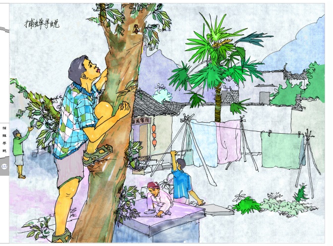此次展览所展示的作品共计180幅,分别从经济搞活、生态兴农、科技富农、文化下乡、非物传承、学堂撷英、优生优育、安居乐业等8个方面进行描绘,每一幅画面都反映了满满烟火气的田园生活和农村的变化发展,在创作表现手法中,做到用色大胆、线条洗练,色调明快、造型准确。作者力图通过质朴自然的画作,向观众传达内心的最朴素情感——那就是对家乡这片土地的热爱,以及对家乡父老乡亲们的深切怀念,也向学生传达一位教育者的初心——那就是希望启发同学们养成爱党爱祖国爱家乡的优良品质。