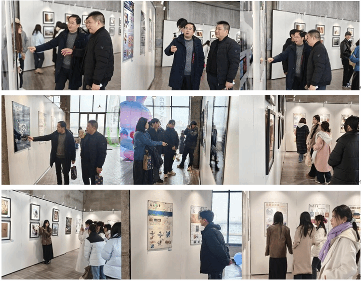 开幕式结束后各领导、九江学院艺术学院师生以及观展市民在展厅内参观了22级产品设计专业的同学们的精彩作品。观展过程中,现场来宾也围绕着这些精彩作品展开了深入的讨论,就作品的艺术风格、创作技法、表达内涵等多方面进行了热烈的交流,从不同角度剖析解读作品,分享各自感悟与见解。