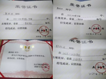 国家奖学金是对优秀学生的一种嘉奖和鼓励,是国家和社会对辛勤努力和取得显著成绩的同学所给予的高度肯定。护理学院A2312 班的郭珍汝同学,自入校以来便树立了成长规划目标,并始终保持勤奋刻苦的学习态度,她凭努力与汗水,在学业上成绩斐然。2023 - 2024 学年专业排名始终第一,连获该学年两学期一等奖学金,还将 2024 年 5 月的翠林奖学金及 9 月“三好学生”荣誉称号收入囊中,彰显个人奋进,更凸显学院培育之功。