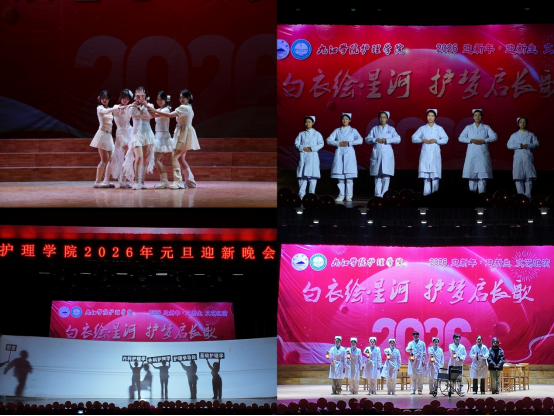 今夜,星光与白衣相映成辉,青春与梦想共振齐鸣。整场演出以艺术为桥,串联起专业理想与使命担当,既充分展现了护理学子昂扬向上、奋发有为的精神风貌,更凝聚了全院师生同心同德、开拓新程的信念与力量。展望2026年,祝愿护理学院弦歌不辍、薪火长传,在人才培养与学科建设的道路上再创佳绩、更展宏图!