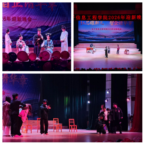 2025年12月19日晚,电子信息工程学院“红芯耀新元,智企谱华章”迎新年、迎新生主题晚会在学校南门大礼堂隆重举行。晚会由电子信息工程学院主办、江西力源海纳股份有限公司协办,融合迎接2025级新生与欢庆2026新年的“双新”之意,为全院师生呈现了一场精彩纷呈的青春盛会。