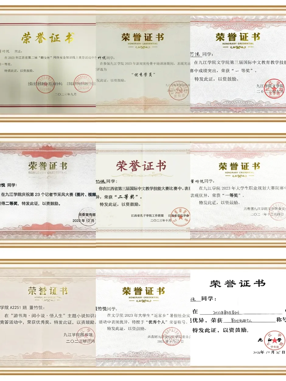 董竹悦同学是我院汉语国际教育专业A2251班的一名学生,她积极参与学校组织的各类竞赛和活动,不断提高自己的综合素质。董竹悦同学勤奋学习,注重实践,对职业规划有着浓厚的兴趣与才华。这次她能在大学生职业规划大赛中获奖,也是对她勤奋努力和才华出众的充分肯定。