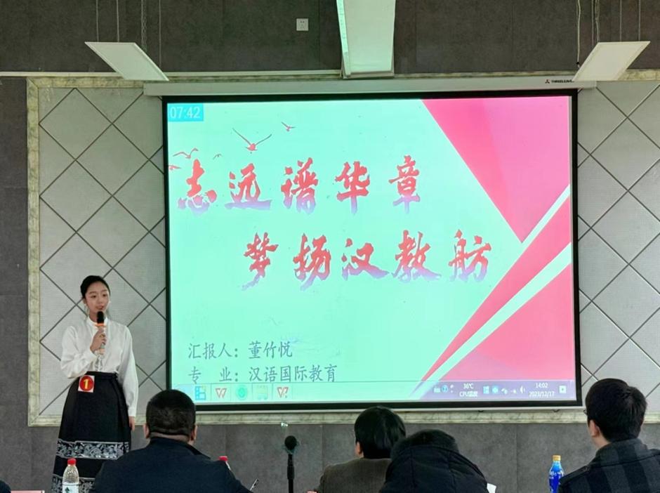 通过前期的收集相关材料和制作职业策划书,我对汉语国际教育这个专业有了进一步的认识,也对我自己未来的职业规划更加清晰。其他参赛选手都非常厉害,多为各学院的学生会主席,很多从高中就开始参加国赛,比赛经验丰富。我从他们身上学到了很多,也看到了自己的不足,以后我会继续加油,相信好运藏在努力中,成功藏在奋斗中!董竹悦在采访中说道。
